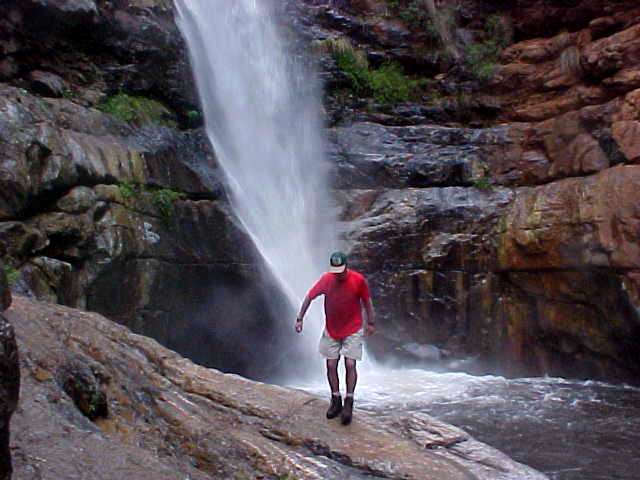 The water had just gone over a few bridges too, as we could see from the debris on the bridges! Andre and I walked along a 5-minutes path towards the location where once a pleasing waterfall fell down, but it had changed in a ferocious torrent, splashing down in the natural pool. The ordinary old-aged tourists all stayed at a distance with their walking sticks, while Andre and I climed on the wet rocks, trying to get very close to the fall.