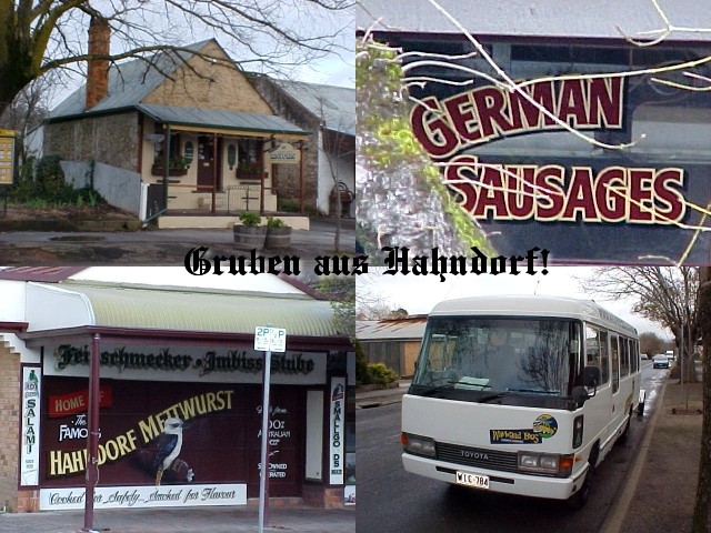 The first stop the bus made was in the historic town Hahndorf, which is German for Rooster Village. But there also was a Captain Hahn, who arrived in Adelaide some 200 years ago with a boat full of Germans, ready to settle here. Hahn travelled around the area and decided to start a town southeast of Adelaide. The name would become Hahndorf.