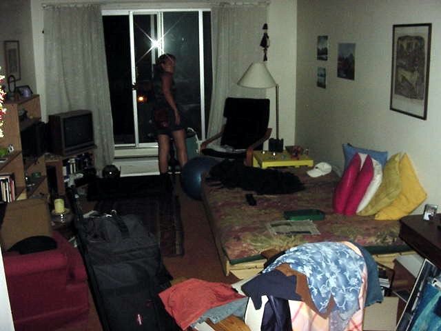 Jocelyn sincerely apologized to me about the state of her apartment. "If I knew you'd be staying here, I would have cleaned up a bit." But that was fine to me. Her place looked like some teenagers had been partying nonstop for the last few days. I actually had a good laugh about it, positively of course. Maybe because I always stay at very cleaned places. Her couch became a fold-out bed after we removed some piles of clothing and stretched it out.