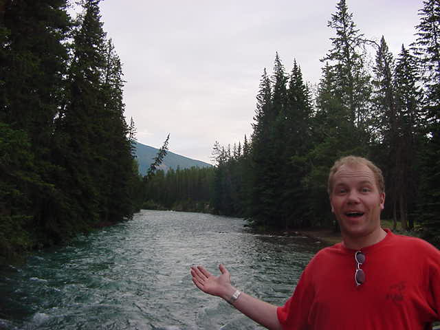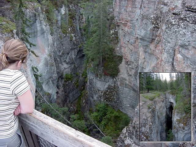 The Maligne River is a fast streaming river, but believe me too: terribly cold! The sun had gone down when Andrea showed me the last attraction for today, the deep limestone cut Maligne Canyon itself. While standing on the "Third Bridge" over the river (they numbered all bridges around Jasper so you can never get lost if you find yourself a bridge) we watched down one of the most spectacular gorges in the Canadian Rockies: sheer limestone walls plunge to depths of over 50 metres (165 ft.).