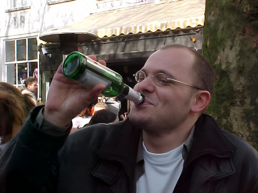 That gave Patricia the idea the give him a bottle of Dutch DropShot, a very alcoholic liqueur with a strong licorice taste.